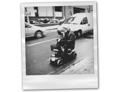 Dan ynienen komt der in man oanriden yn syn skootmobyl, rjocht op de minsken yn. Dy wike oan ‘e kant, ik spring gau op side want ik ha gjin nocht om noch ris nei myn soargfersekering te gean. Ik ha noch krekt de moed him te freegjen as ik him helpe kin. Dan barst er yn ienen los tusken al dy minsken, ien en al opstânnichheid en fertriet en hy ropt it ùt;