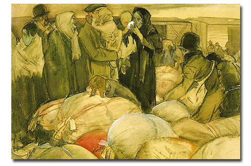 Flechtelingen. Der is yn al dy jierren neat feroare. Hjoed de dei sjogge wy se alle dagen op de tillevyzje foar by kommen. Ik moat tajaan somtiden went min oan dy bylden mar as ik dan nei dit skilderij sjoch wurd ik der somtiden tryst fan, wannear soene minsken net mear flechtsje hoege!