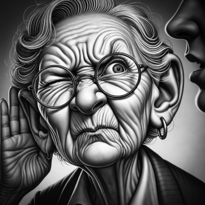Sa ek in freondinne dy tinkt dat sy tweintich bliuwt en net oan âlderdomskwalen docht. Myn mem woe der ek net oan mar dat hong er fan ôf welke fragen ik stelde. Utsein as ik nei har sinteraasje frege, dan hearde se alles.