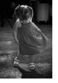 Op it skoalplein stiet in famke fan san acht jier mei twa blonde stutsjes . Se freget noch es; “Bent u ook naar de kerk geweest?“