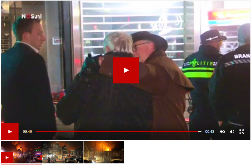 Ik seach op it nijs (spiegeltsje) in man gûlen: syn winkelpand en hûs stie yn ljochte lôge. Hy sei skriemend: “Fjouwer generaasjes ha der yn wenne en wurke.“