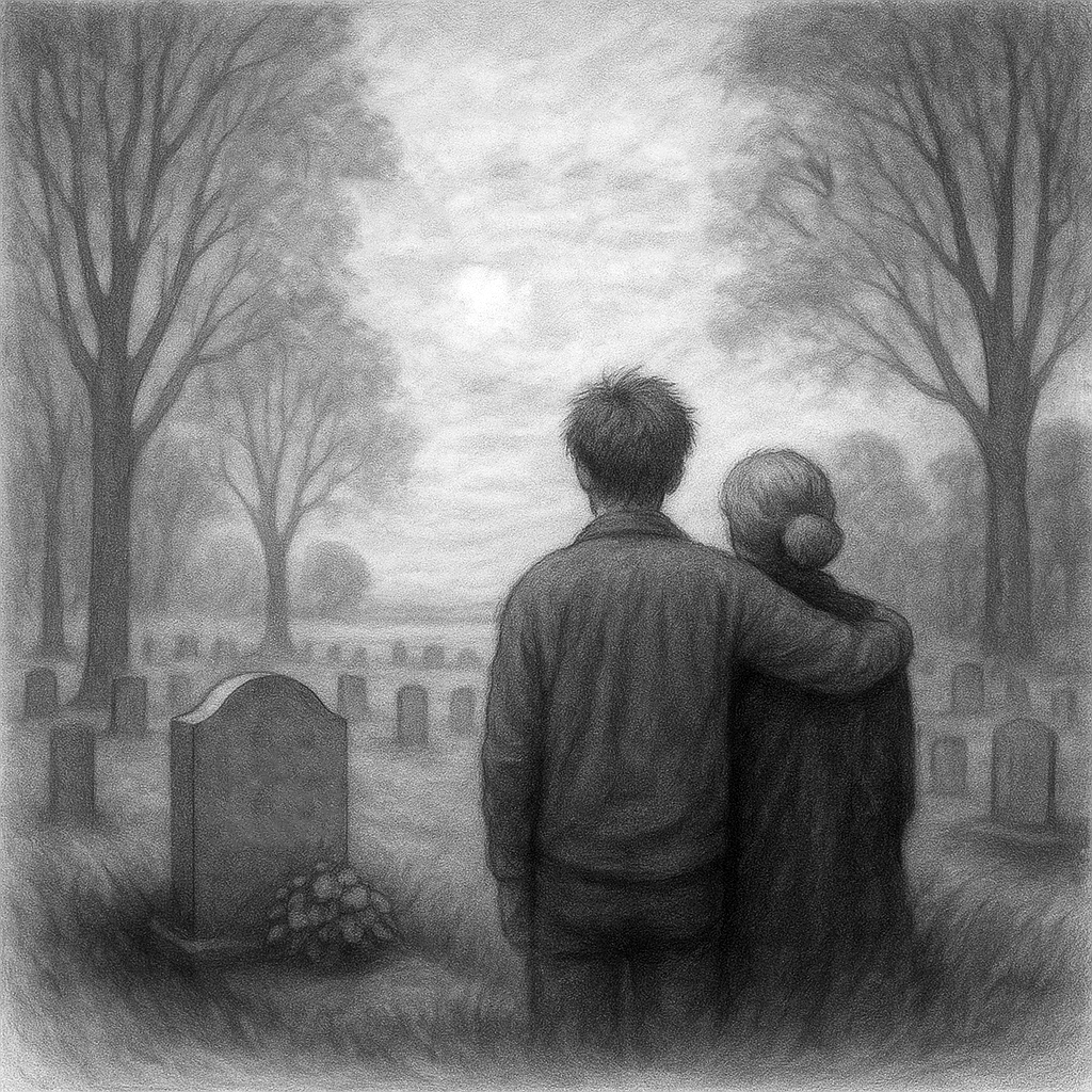 Myn heit en mem lizze der begroeven. We sjogge efkes as it er wat kreas byleit en lizze wat blommen del.