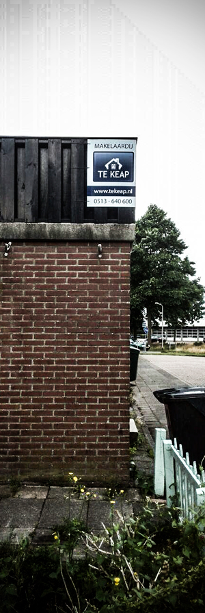 300Oeral om ùs hinne steane buorden yn de tùn: ‘Te Koop’ (as by Friezen dy hun net ferbrekke wolle; ‘Te Keap’).