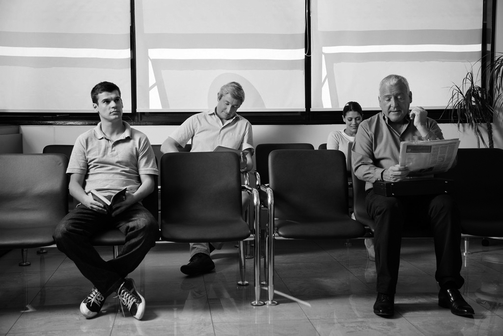Neist my sit in âlde frou yn in weintsje, se is fêst makke mei riemen. Ik krij meilijen mei har, se sit hjir al lang sûnder dat ien om har bekommerit.