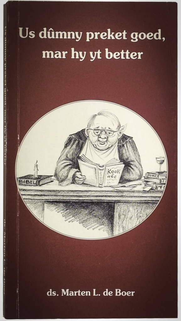 Ik pak it boekje fan Marten L. de Boer derby: “Ûs dûmny preket goed, mar hy yt better”. Sukses fersekere 😁