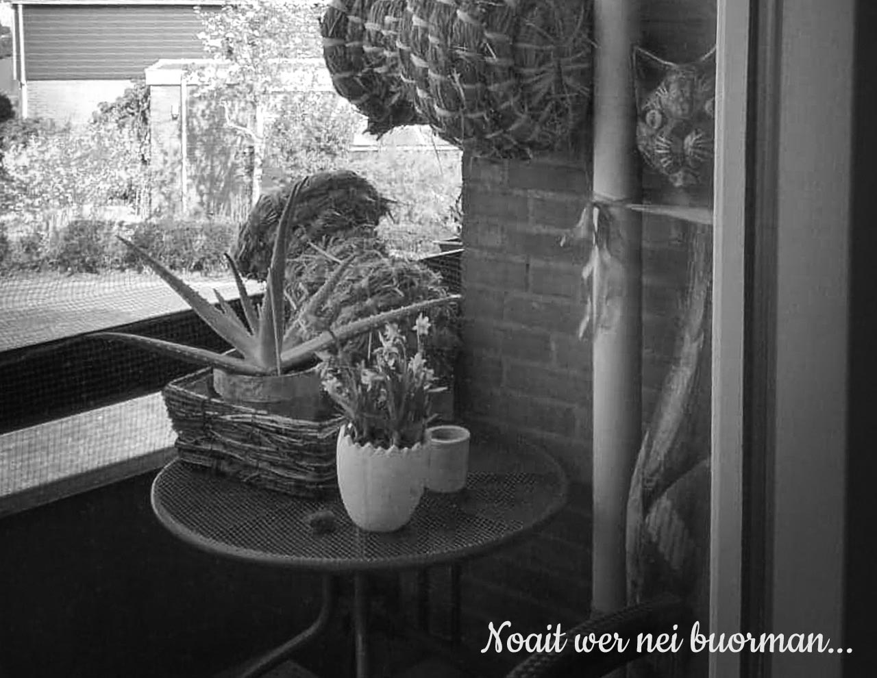 Salang wy hjirre wenne ha, wiene sy grutte freonen. Se rûn, oer de rânen fan it balkon, alle dagen nei de buorman ta. Se kaam net yn’e hûs mar gong foar it raam sitten en seach frijmoedich de keamer yn.