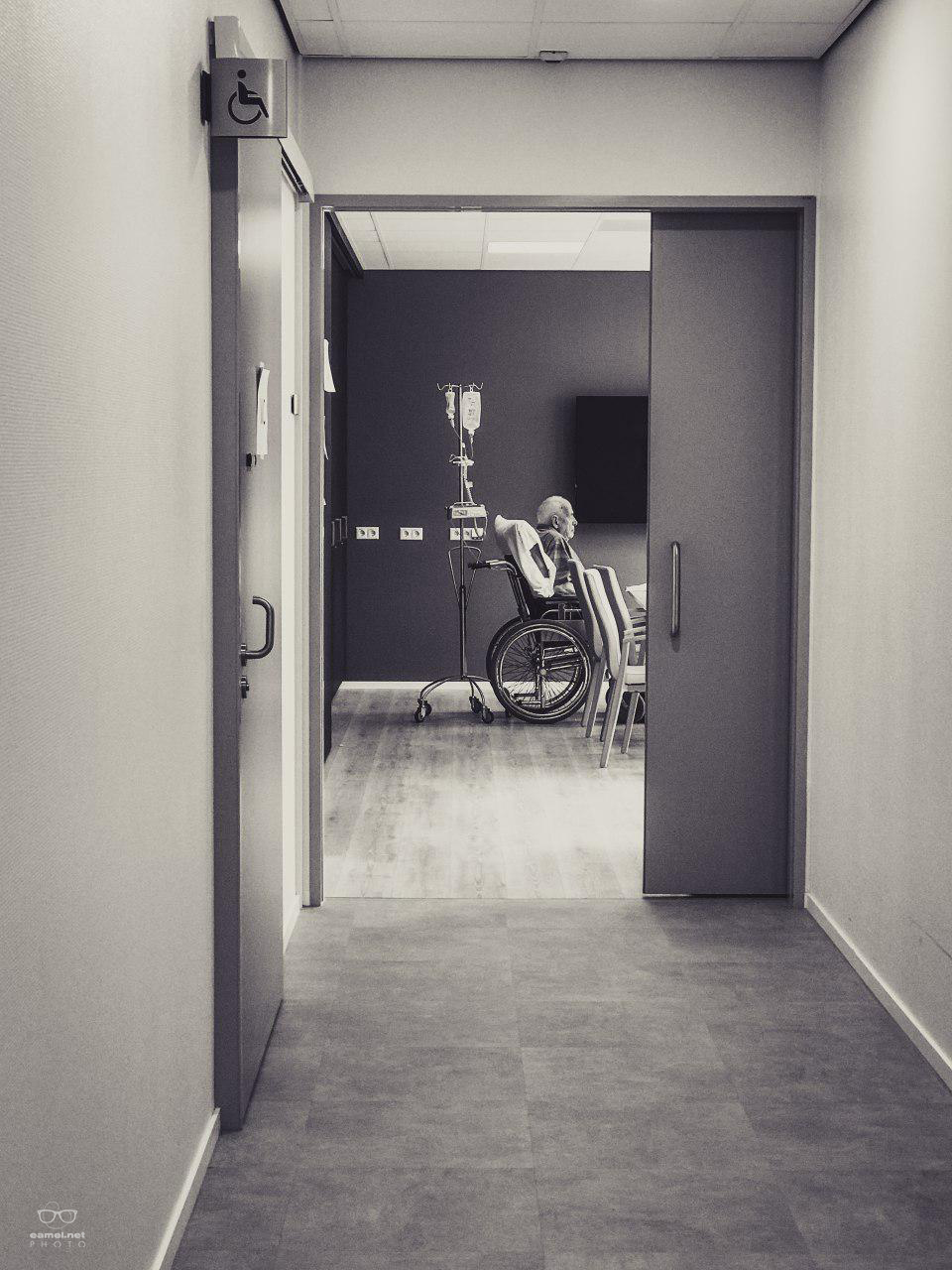 Wat ûnwennich mei de situaasje skarrelje ik de romte yn, in desynfiktearjend fleske mei in doekje stiet klear. Moat min no earst desynfiktearje? As moat min it no op it ein dwaan? Ik doch it mar allebeide dan wurdt in oar net besmet .