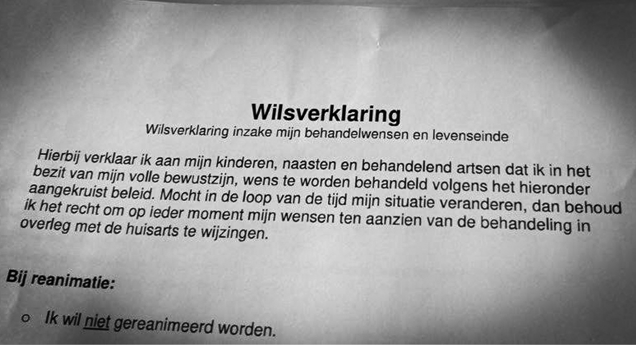 Wat wol mem no?’ freget de soan, en hy wiist op in papier wat al dagen útdaagjend prominint op ‘e tafel leit. It is in wilsferklearring dy ik ynfolje moat, en der skiet ik no al dagen tsjin oan. De doktersassistinte hat him brocht en dy moat ik no ynfolje. Mar ik bin der noch lang [Lês mear »]
