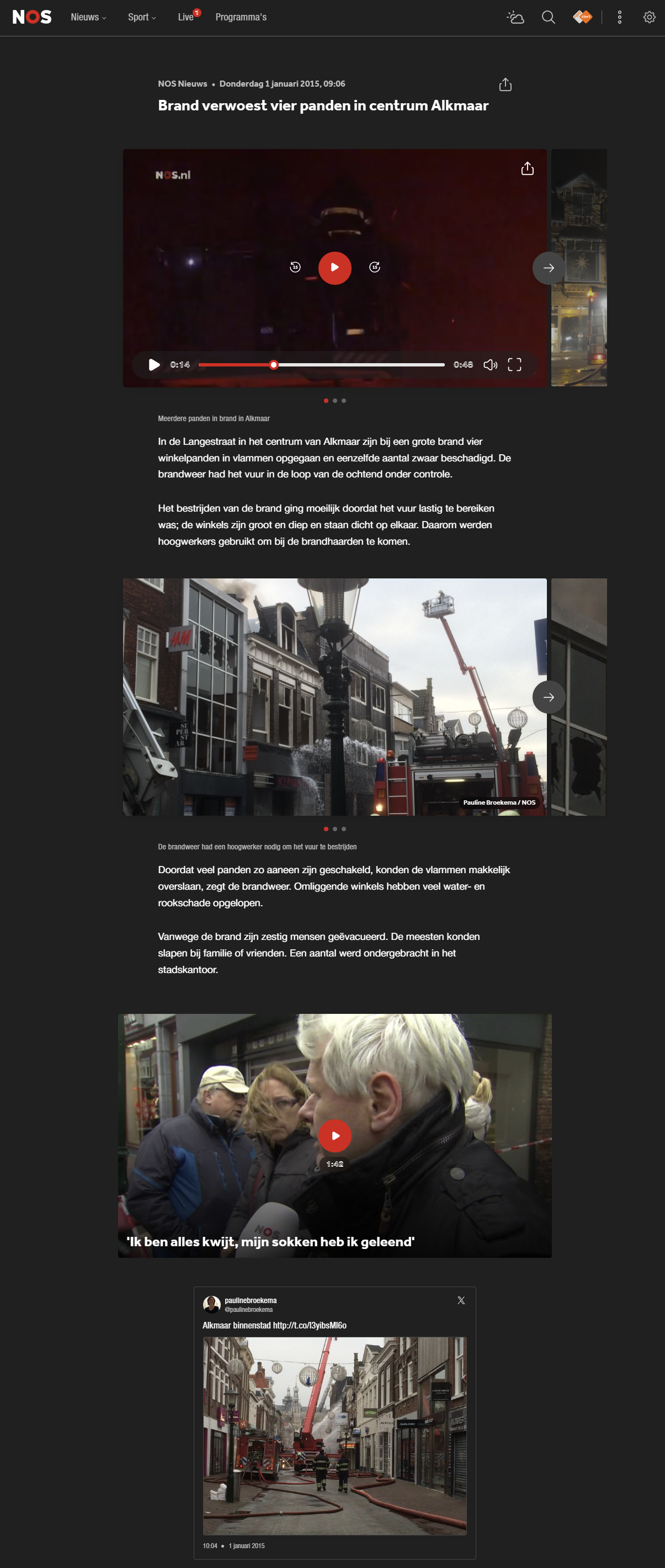 Ik seach op it nijs (spiegeltsje) in man gûlen: syn winkelpand en hûs stie yn ljochte lôge. Hy sei skriemend: “Fjouwer generaasjes ha der yn wenne en wurke.“