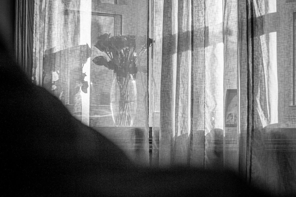 Ynkringend giet de doarbel, ik rop: ‘Ik kom ‘r oan!’ ‘It iten is betiid hjoed’, betink ik my. Senuweftich sykje ik om myn skuon. In frjemde gewoante miskyn, mar ik rin altyd op bleate fuotten yn hûs. Dan bin ik mysels want ik bin thús. De doarbel hâldt oan. Wer…